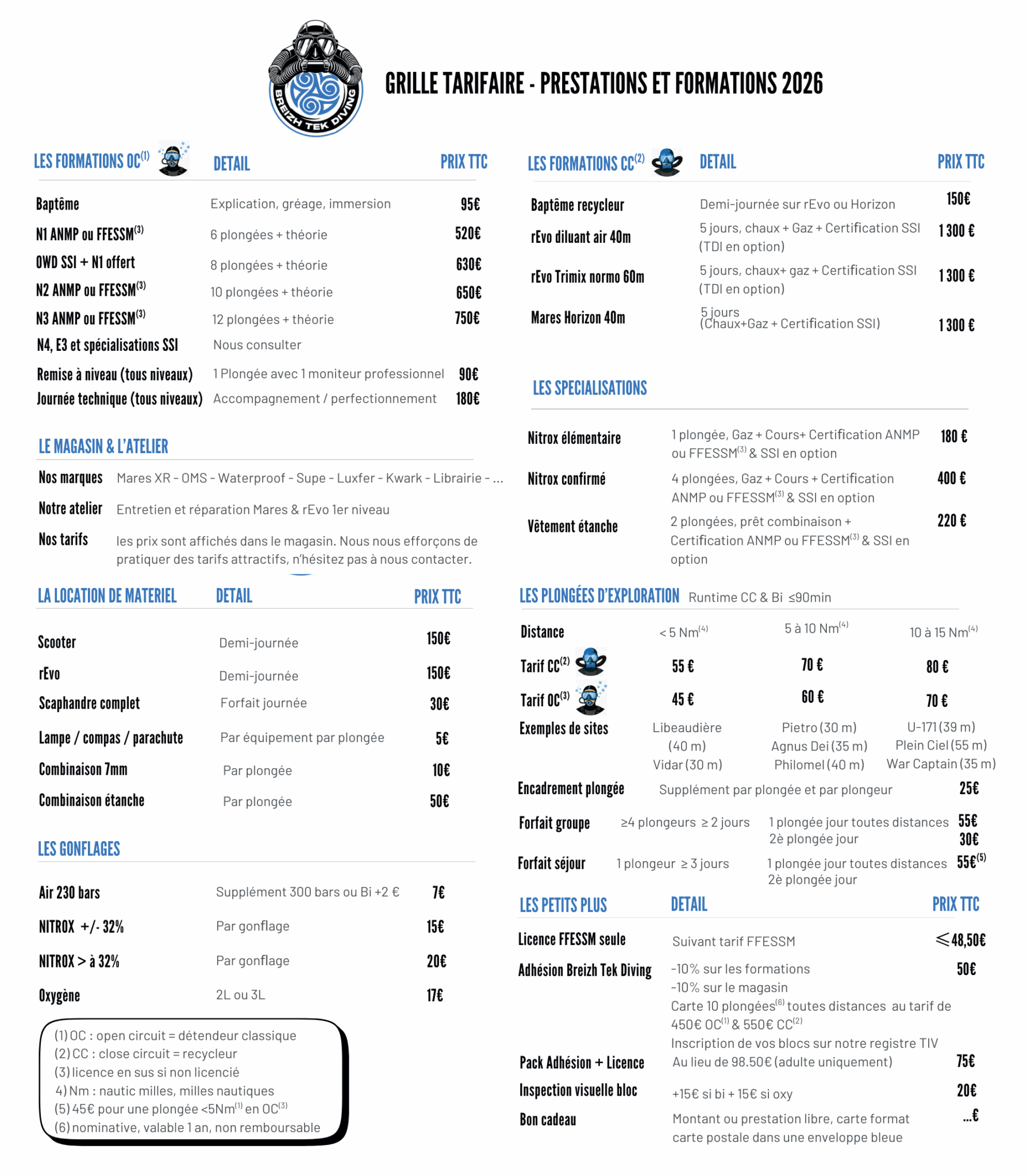 voir plus ↘ Tarifs Réserver un baptême En cas de météo défavorable, BTDiving vous propose des sites de repli en carrière pour plonger en toute sécurité, notamment à Questembert. Sites de plongées Morbihan Nos tarifs Nous contacter Nos partenaires