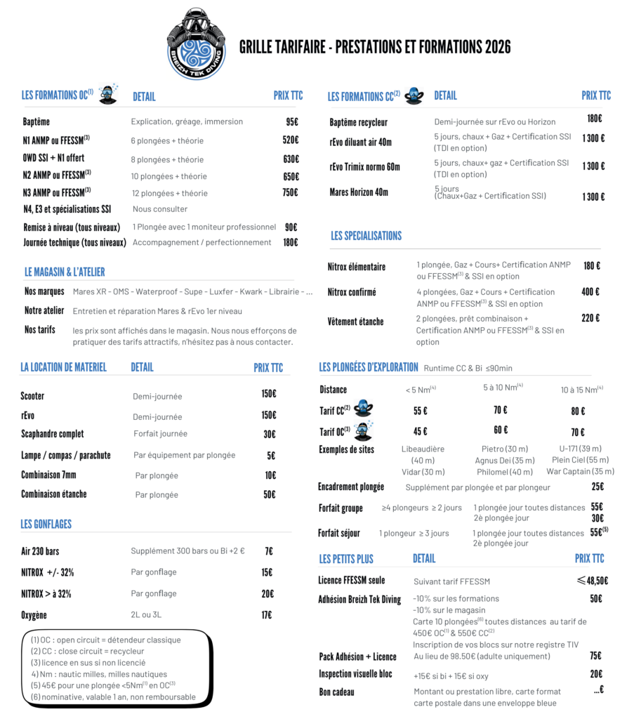 voir plus ↘ Tarifs Réserver un baptême En cas de météo défavorable, BTDiving vous propose des sites de repli en carrière pour plonger en toute sécurité, notamment à Questembert. Sites de plongées Morbihan Nos tarifs Nous contacter Nos partenaires